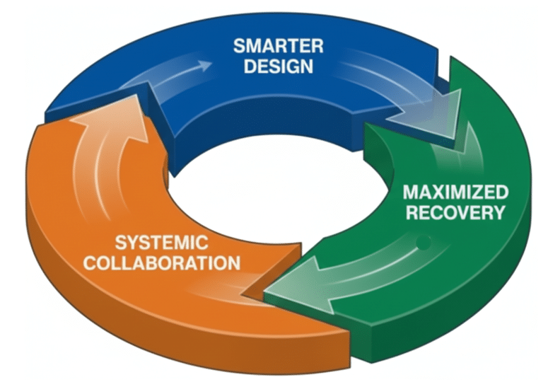 The blueprint for this transition is built on three interconnected levers: designing for value retention, operating for recovery, and collaborating for systemic change.